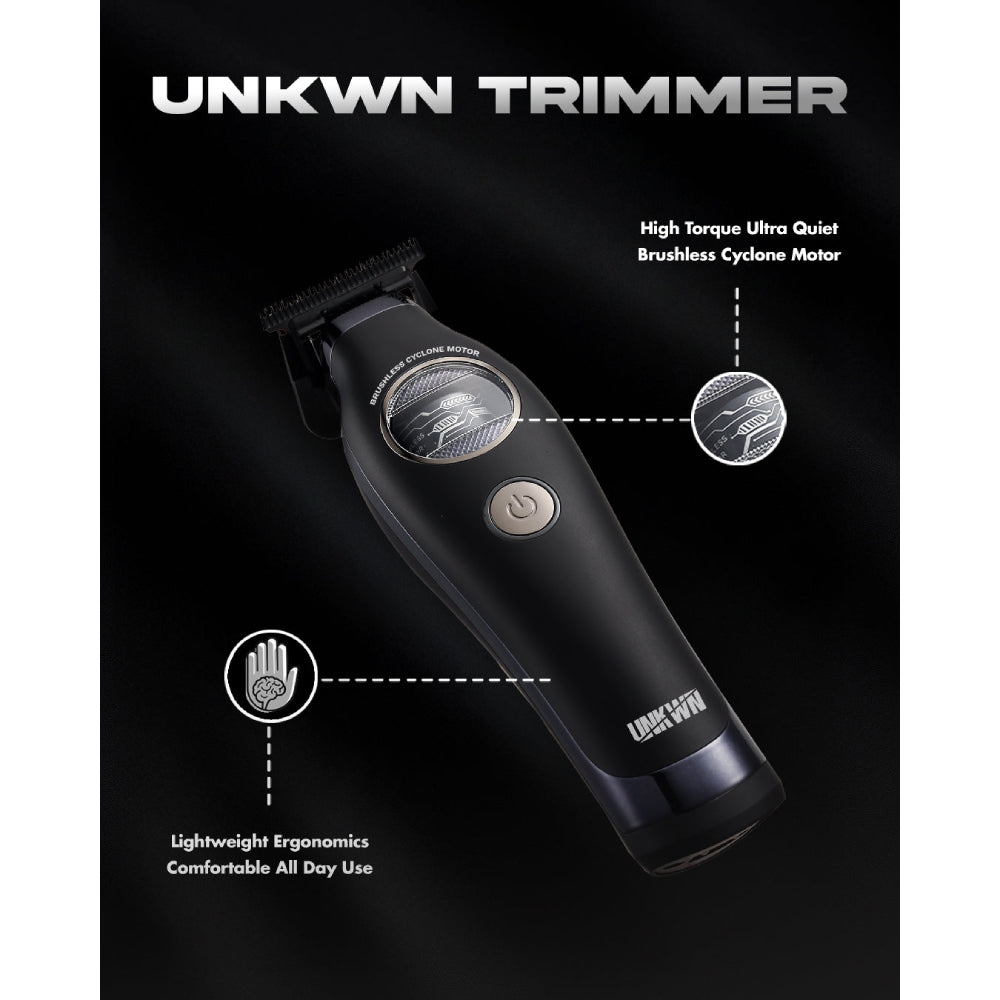 The UNKWN Cyclone Trimmers are equipped with our High Torque Ultra Quiet Cyclone Motor, delivering massive torque with whisper-quiet operation.